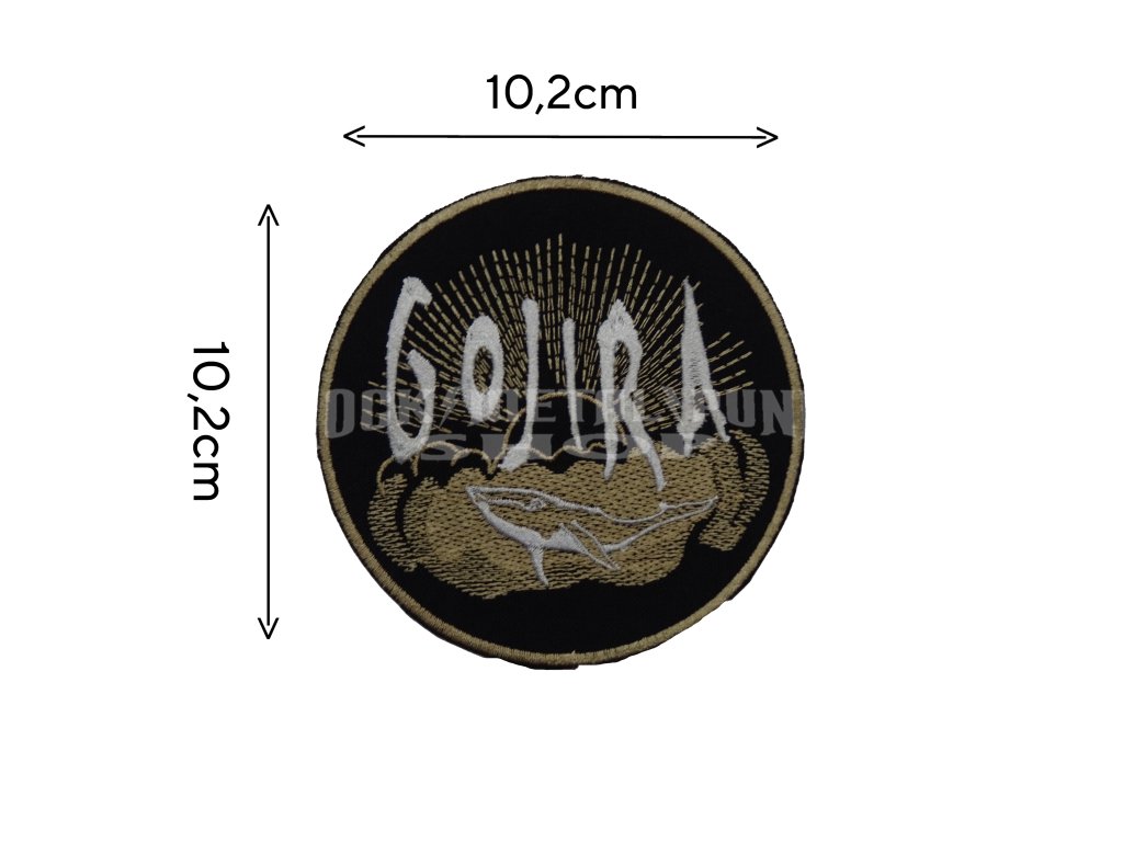 Vyšívaná nášivka s lemovanými okraji s motivem skupiny Gojira, která nabízí rozměry 10,2 x 10,2 cm.